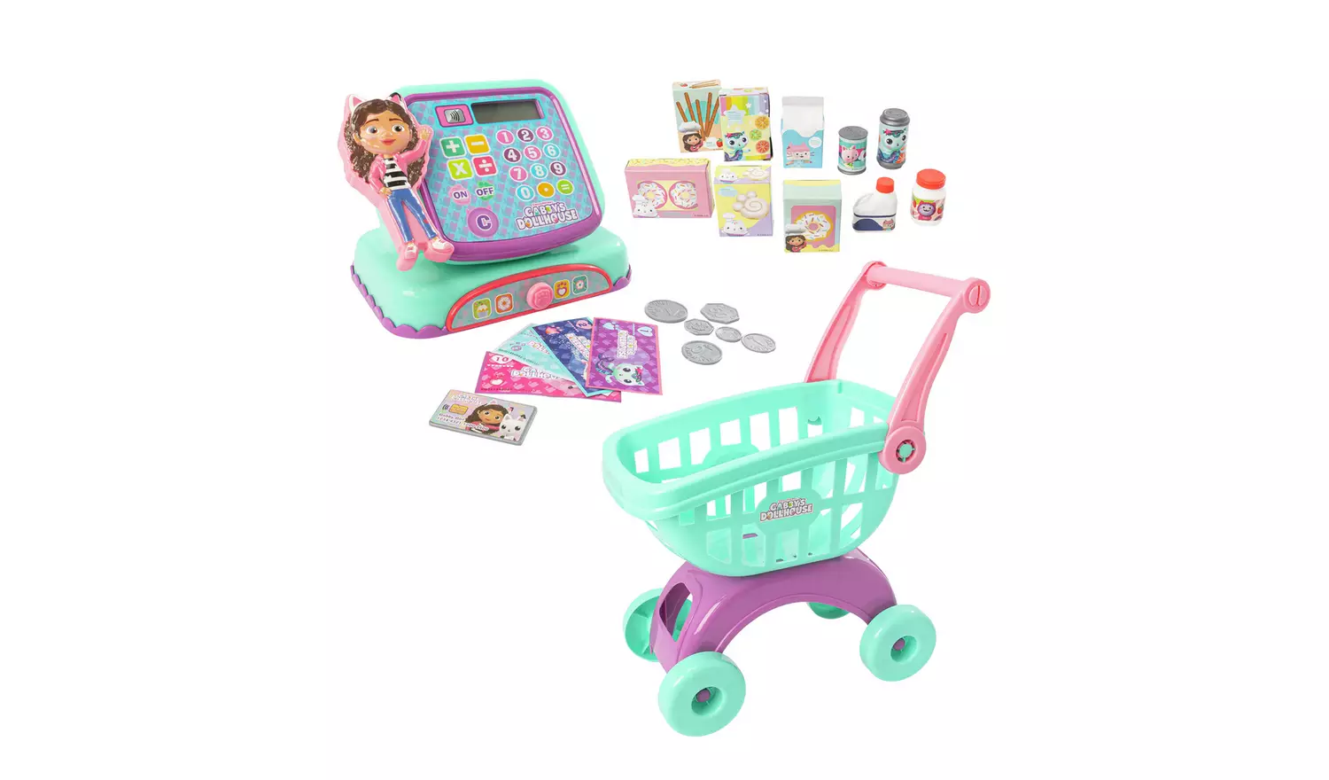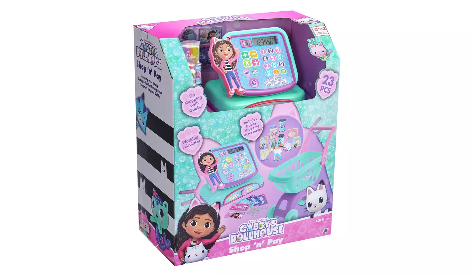 Step into Gabby’s world of shopping with the Gabby Shop n Pay playset! The playset includes a colourful Gabby Shopping trolley, fun shopping accessories, and play money, perfect for little shoppers. Gabby’s Shop ‘n’ Pay set includes the Gabby Cash Register with a working calculator function. Whether they’re tapping their Gabby’s Bank card or pushing the shopping trolley around, this set is packed with imaginative play, building their social interaction and communication skills. Requires 1x AA Batteries.