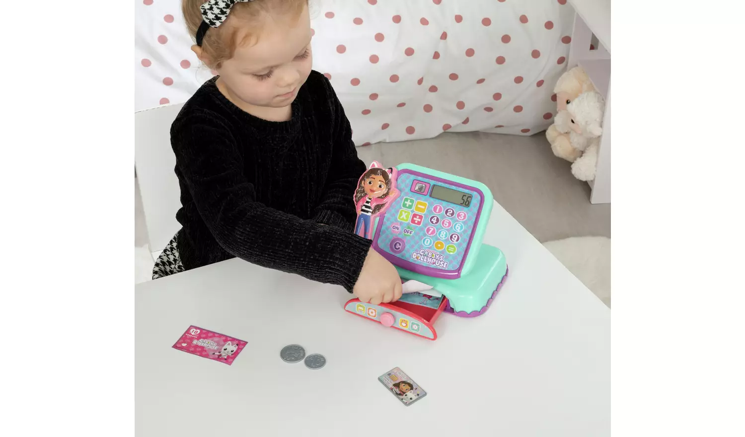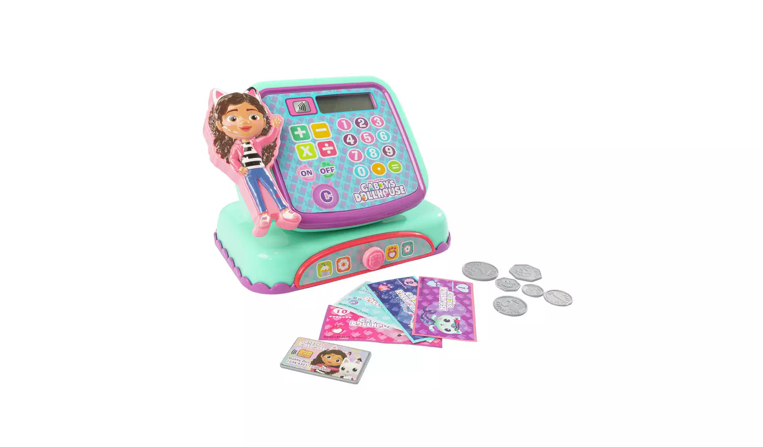 Gabby’s Cash register with a working calculator, pretend money, and a card included.