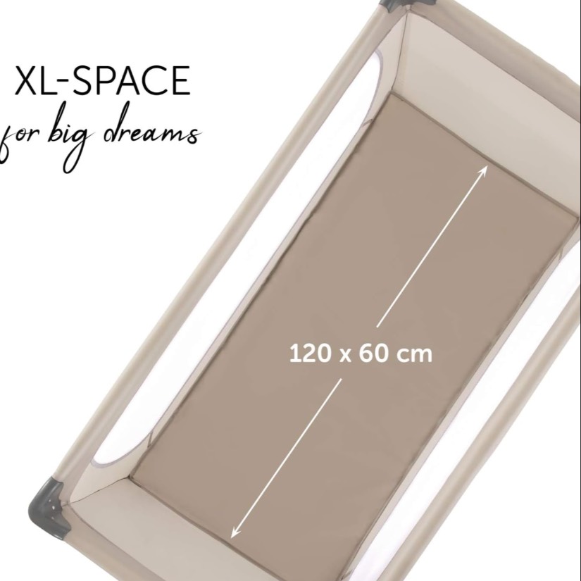 Travel cot Hauck & standard mattress 120 x 60 sleep area 125 x 75 area required